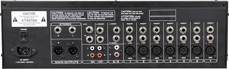 技术参数: 1、麦克风输入:8路(7个卡侬接口)。 2、线路输入:7路单插单声道接口。 3、立体声输入:1组。 4、每路都带PFL按钮。 5、输出通路:1组立体声主输出、2组辅助输出、1路耳机监听输出。 6、效果器:24位DSP效果器(包括人声、小房子、大厅、回声、回声+回响、盘子、声乐板、合唱GTR,旋转GTR、颤音GTR类型)。 7、幻象电源:+48V带开关。 8.频率响应:20Hz-20kHz,±3dB 9、失真度:<0.003%(A-weighted)。 10、麦克风均衡输入噪音:-119dB(A-weighted)。 11、共模抑制比:60dB。 12、单通道输入增益:MIC:0 to 48dB,LINE:-33 to+15dB。 13、立体通道输入增益:LINE:-8 to+6dB。 14、主混音串音:-87dBu(A-weighted)。 15、通道串音:-85dBu(A-weighted)。 16、最大输出水平:+20dBu。 17、MIC输入高通滤波:75Hz,18dB/oct。 18、单通道均衡:高频:±15dB@12KHz;中频:±12dB@2.5KHz;低频:±15dB@80Hz。 19、电源:内置开关电源适配器110-220V,30W。 20.功耗:≤23W。 21、尺寸(L×W×H):480*240*140mm。 22、重量:4kg。 |