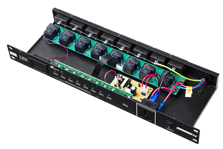 功能特点: (1)顺序开启逆序关闭 。 (2)精准电压显示。 ● 每路开关间隔时间/定时时间:默认1秒。 ● 输出继电器触点电流:30A 277VAC。 ● 电路板规格:双面纤维板,主电源走线二次加厚加粗处理。 ● 供电规格:内置开关电源,适用全球电压AC90-260V 50-60HZ。 ● 主电缆线规格:3*4平方电缆线,总长度为1.5米(有配电源输入插头)。 ● 开启类型:方船型开关; ● 功能显示电压显示表类型:红色数码管显示电压表。 ● 机身尺寸:长480MM * 深150MM * 高48MM(非标准1U); ● 总重量(含包装):2.39KG。 |